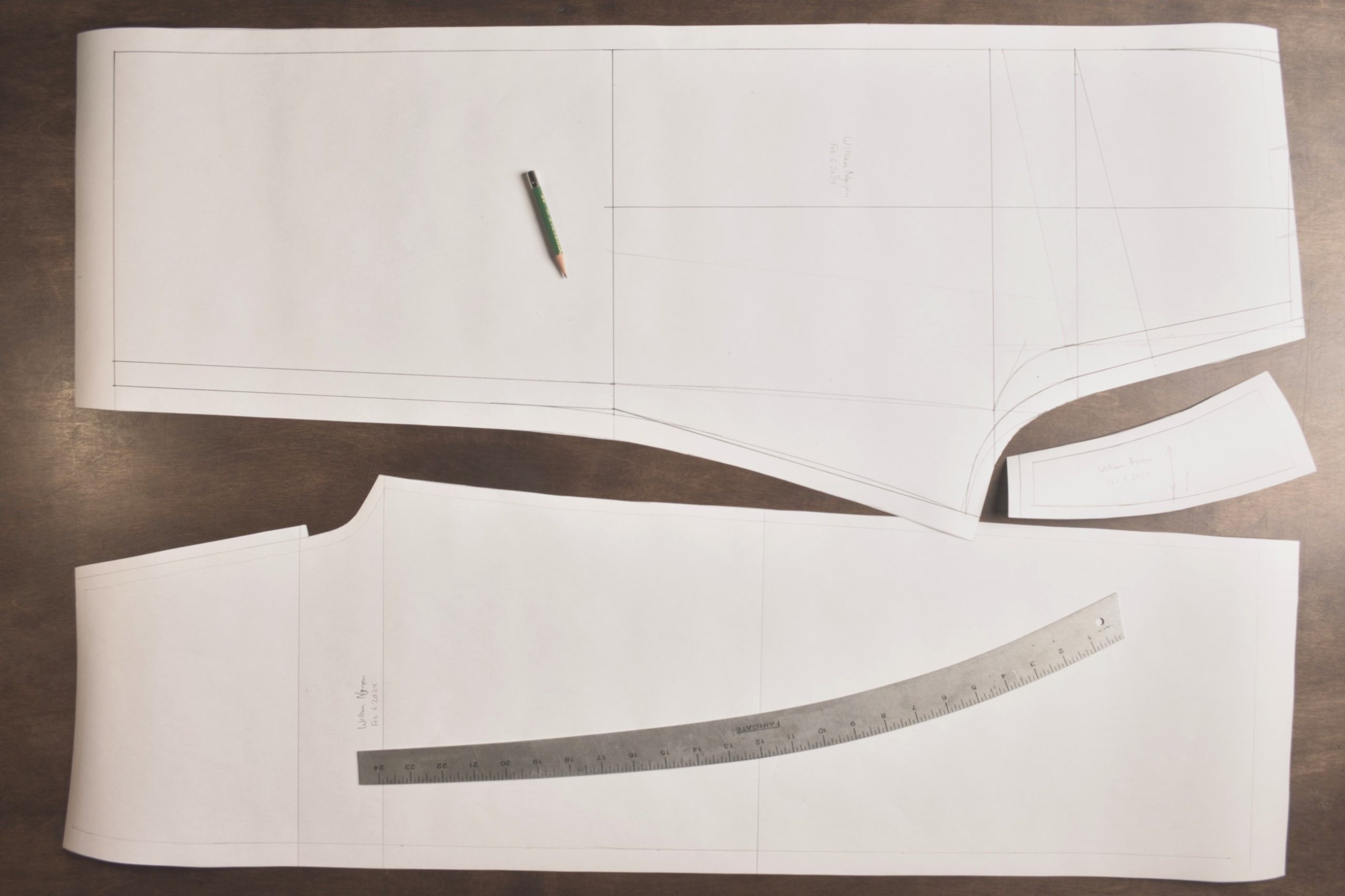 With the pattern pieces all drafted, it’s time to separate them and add the seam allowances. Begin by copying the front leg onto a separate sheet of paper. You can also copy the back leg so as to preserve your original pattern, but I usually just draw the seam allowances right on the draft for…